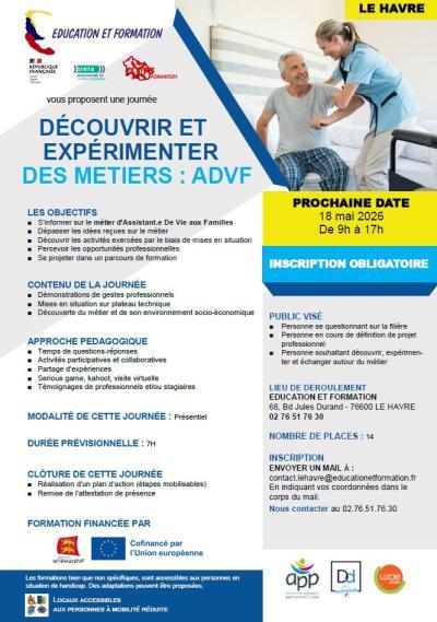 Inscription obligatoire au 02 76 51 76 30 ou par mail contact.lehavre@educationetformation.fr.