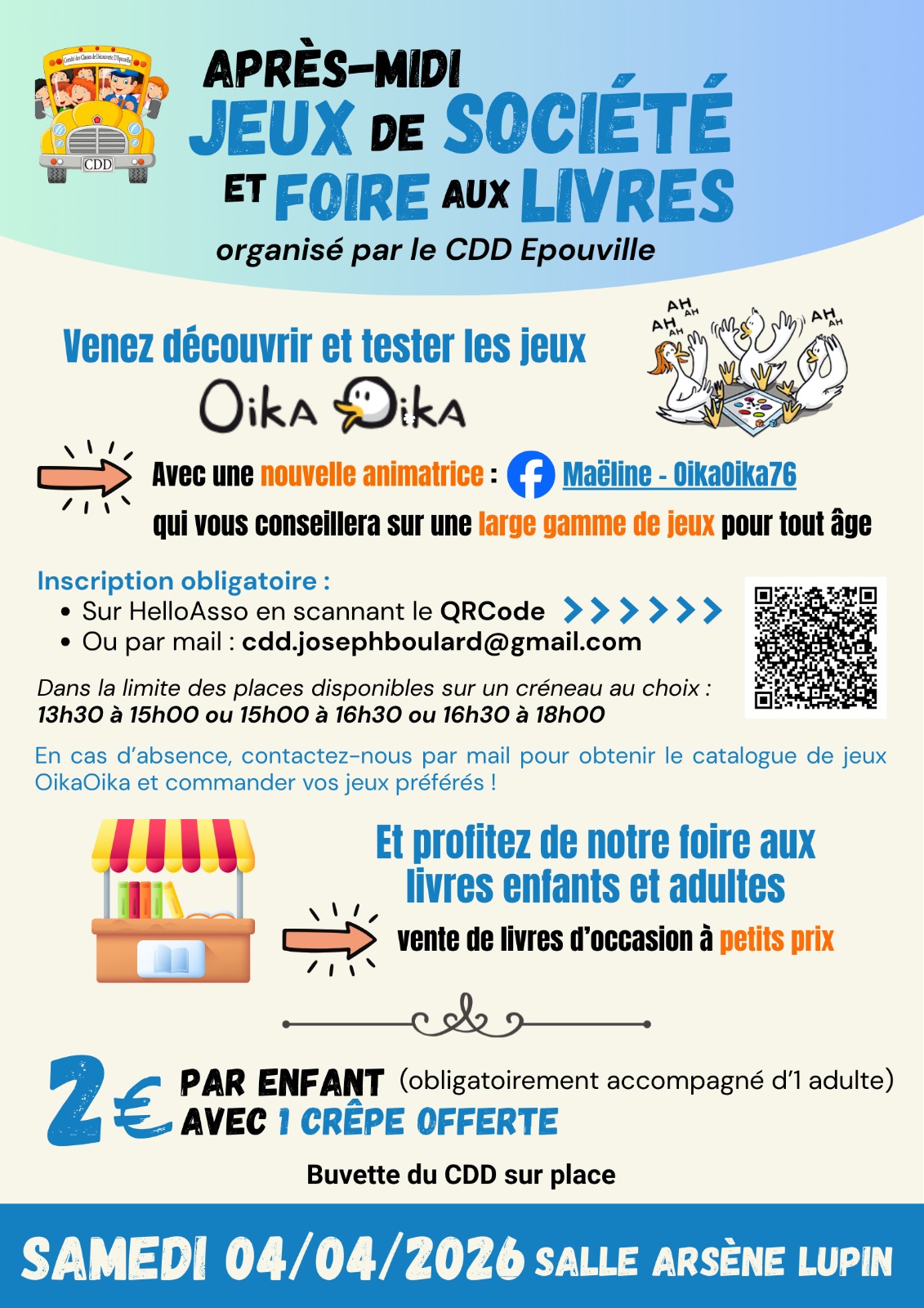 Venez découvrir et tester les jeux et profiter de notre foire aux livres enfants et adultes