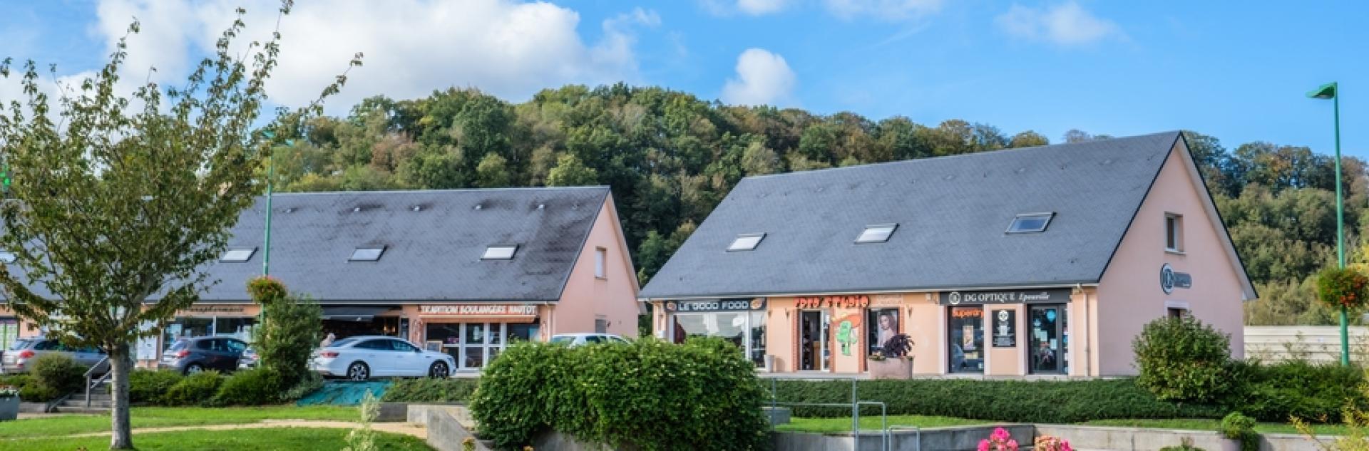 Les entreprises sont également réparties en centre-ville, le long de l’avenue Aristide Briand et route de Rolleville.